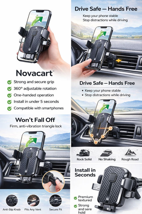 Anti-Vibration Car Phone Mount – 360° Rotation